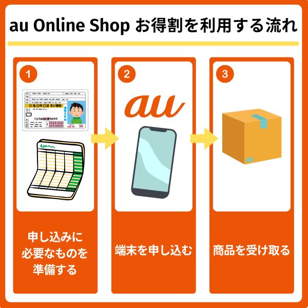 au Online Shop お得割を利用する流れは以下のとおりです。