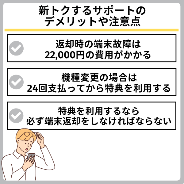 新トクするサポートのデメリットや注意点は以下の3つです。