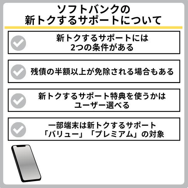 新トクするサポートの利用には、 ソフトバンクが指定する条件を満たす必要があるので事前に確認しておきましょう。