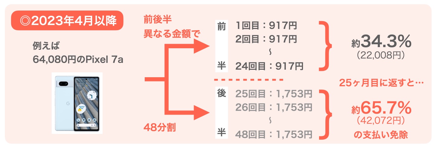 しかし現在は、端末や購入時期ごとに前半(1〜24回目)と後半(25〜48回目)で異なる金額が設定されます。