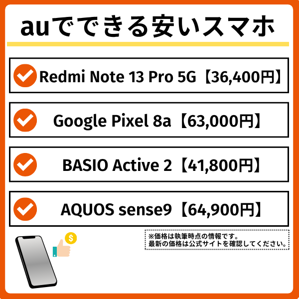 本記事では、コスパ重視で選びたい方に向けて、auの安いスマホを厳選してご紹介します。