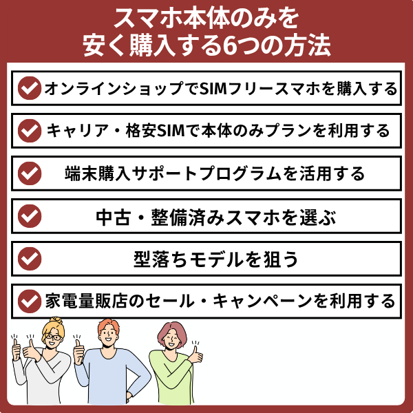 スマホ本体のみを安く購入する6つの方法
