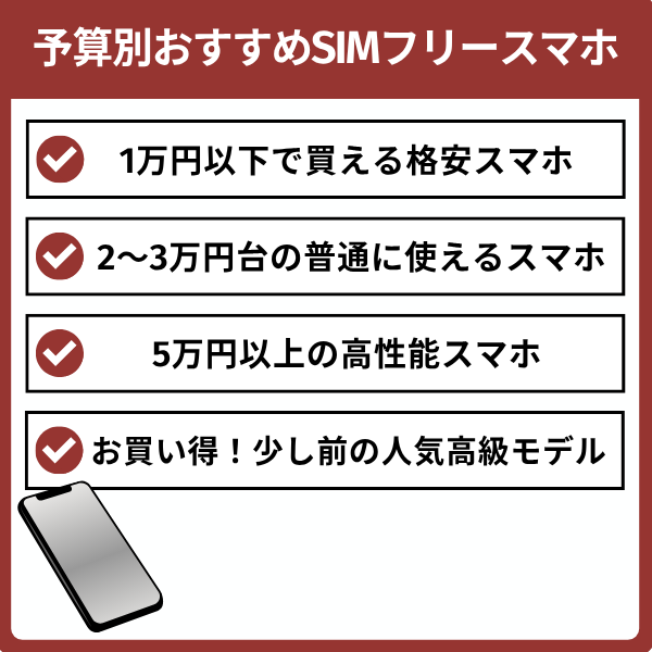 スマホ本体のみを安く購入する方法がわかったら、次は予算別でおすすめできるモデルを紹介します。