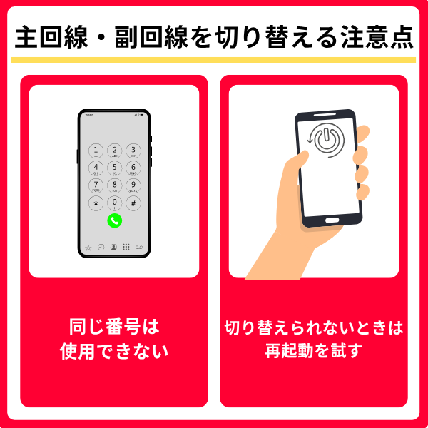 ただし、主回線と副回線の入れ替え時は、家族割の一時解除や複数回線で同じ電話番号が使えないなどの注意点があります。