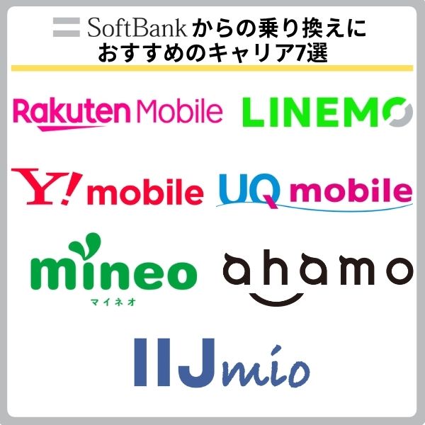 ソフトバンクからの乗り換えにおすすめのキャリアは以下の7つです。