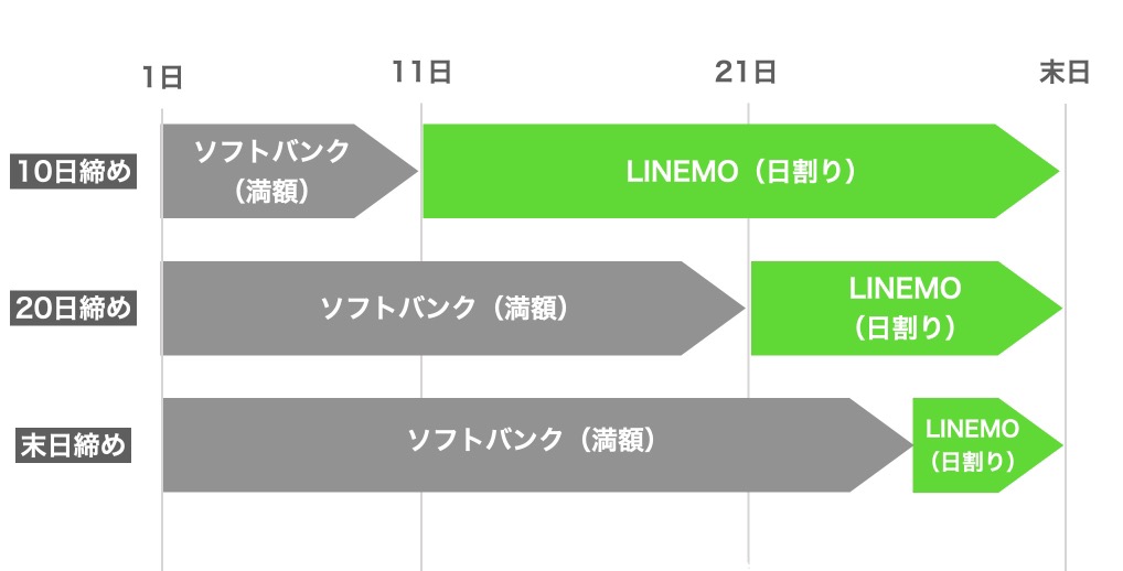 ソフトバンクからLINEMOに乗り換えるなら、締め日前または月末がおすすめです。