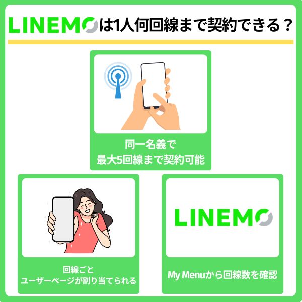 LINEMOは、同一名義で最大5回線まで契約可能で、2回線目以降も特典やキャンペーンが適用されます。