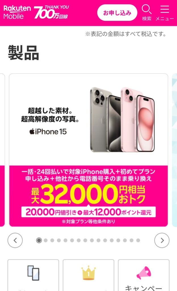過去に楽天モバイルでは0円や1円で機種変更ができるキャンペーンを実施していましたが、2024年に入った段階で無くなりました。