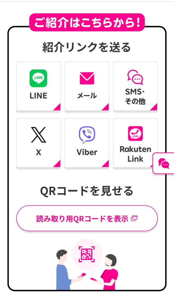 楽天モバイル紹介キャンペーンの紹介方法は以下の4つがあります。