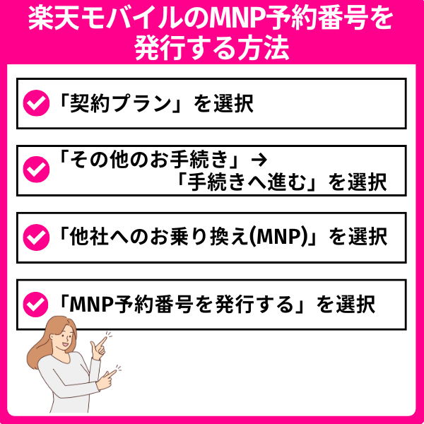 楽天モバイルでMNP予約番号を発行する方法は以下のとおりです。