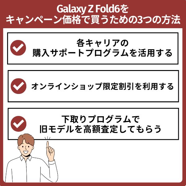 Galaxy Z Fold6をキャンペーン価格で買うための3つの方法