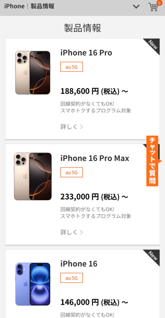 auでiPhone16を購入するときは、スマホトクするプログラムを利用しましょう。
