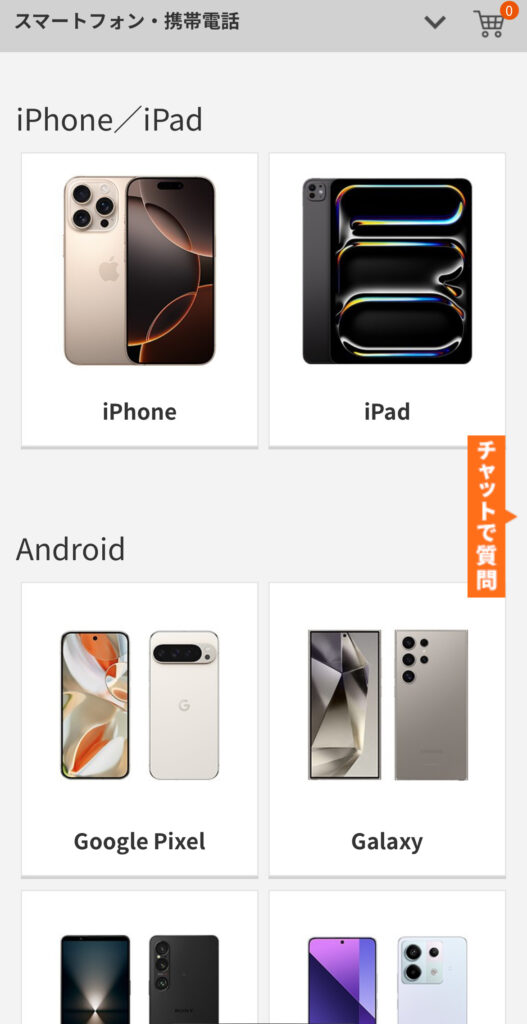 - ラインナップから「iphone」をタップ