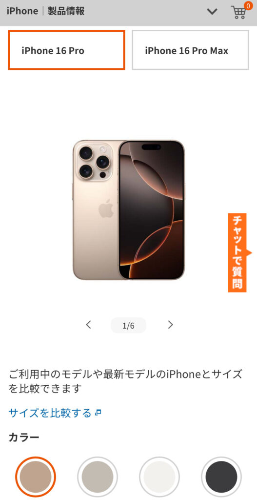 - iPhone16のカラーやストレージ容量を選択