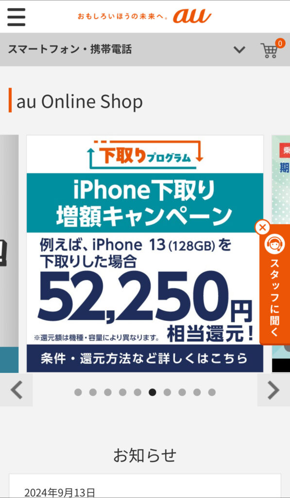 - auオンラインショップにアクセスする