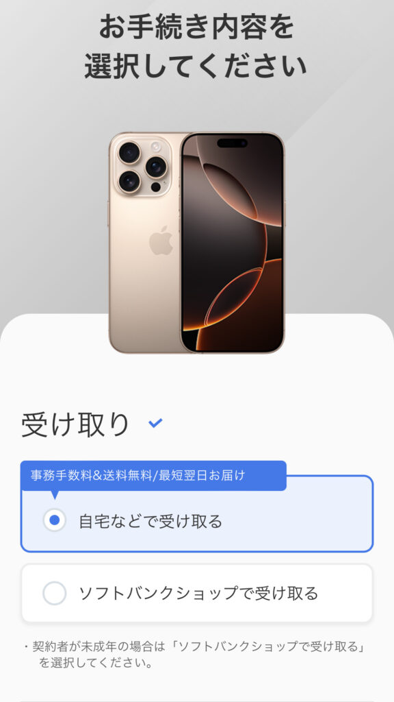 - 受け取り方法や契約形態を選択