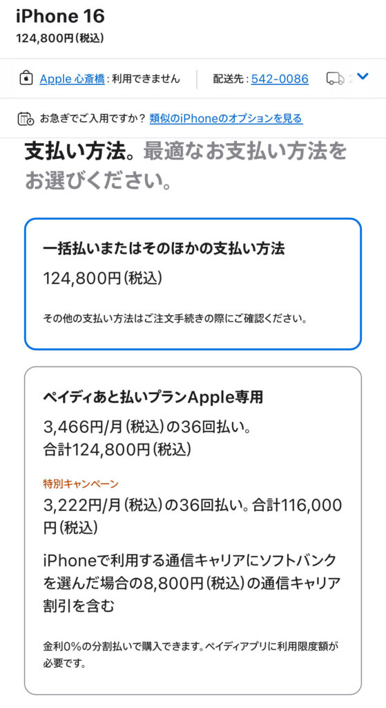 配送予定日が明記されていれば、iPhone16の在庫があると判断できます。