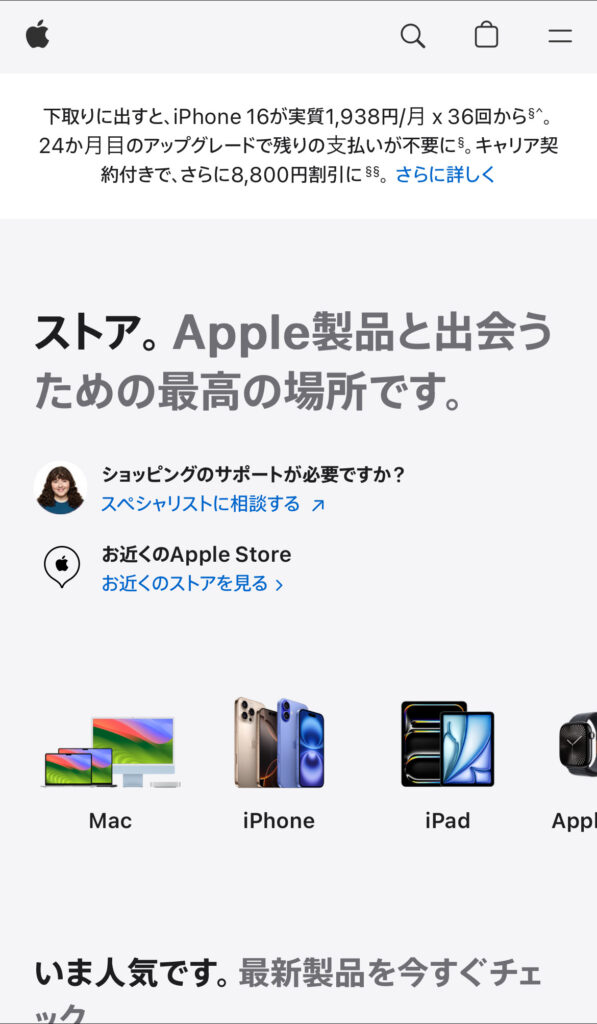 - アップルストア公式サイトにアクセスする