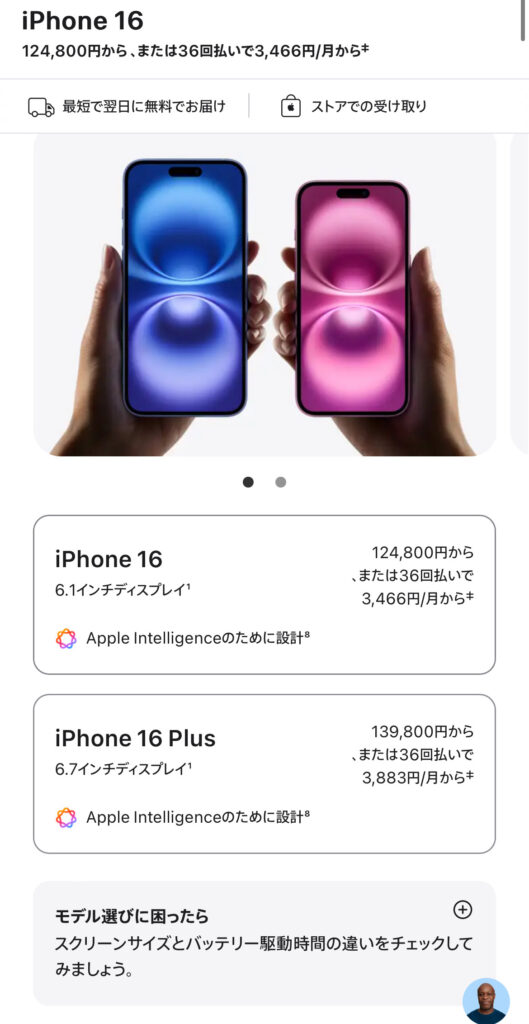 【アップルストア】iPhone16の在庫・入荷状況