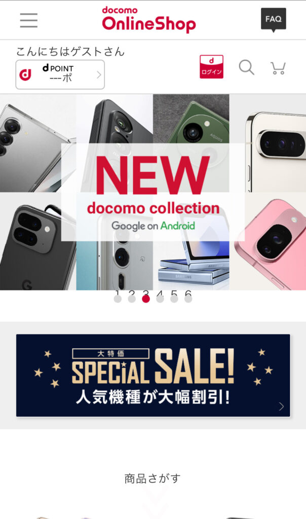 - ドコモオンラインショップにアクセス