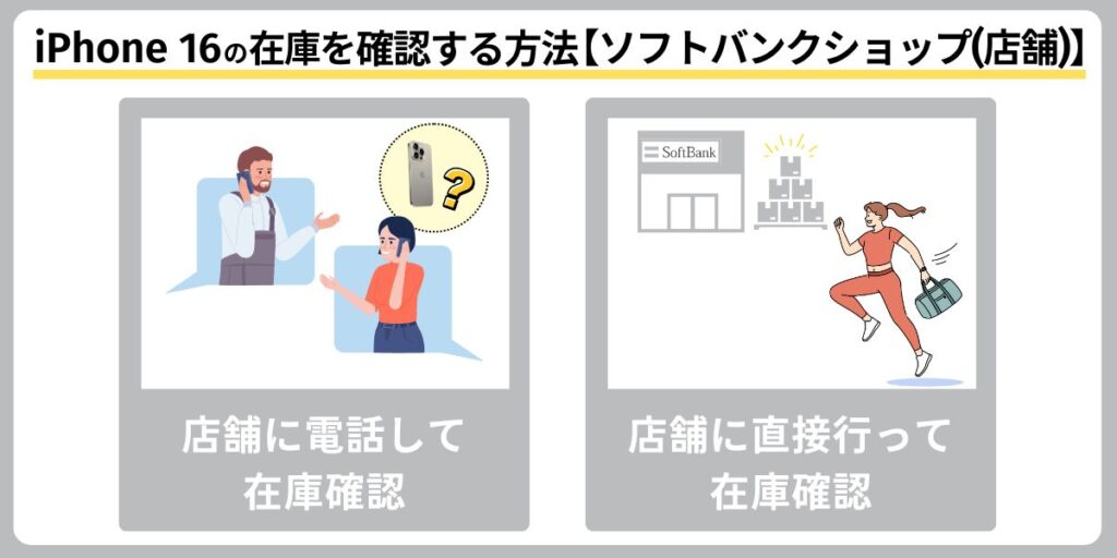 ソフトバンクショップ(店舗)で在庫を確認する方法は下記の2つです。