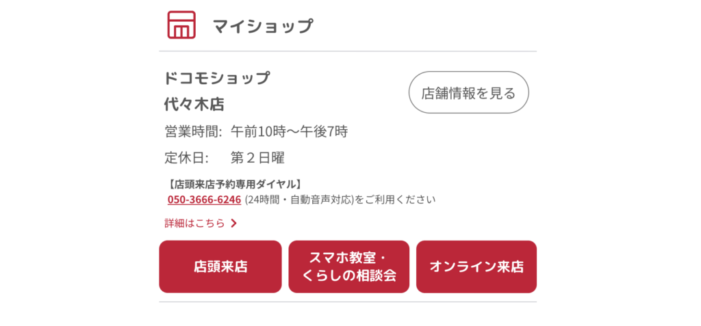 近隣のドコモショップをドコモマイショップに登録しておけば、dポイントが付与されたり、新商品情報を通知してもらえたりします。