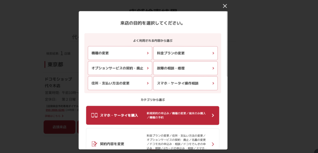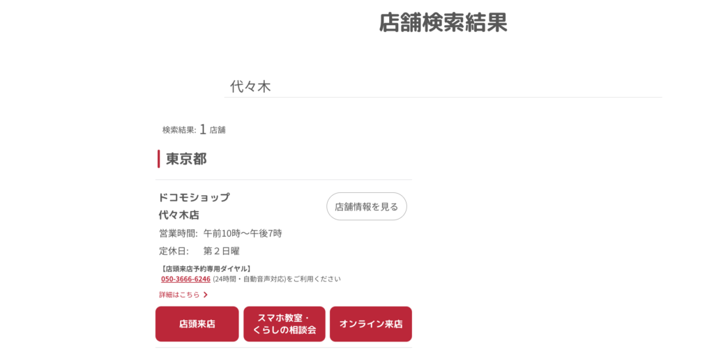 家から近いドコモショップか職場から近いドコモショップのどちらかを登録してください。