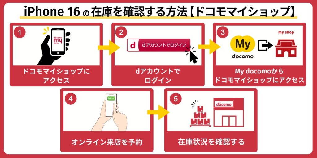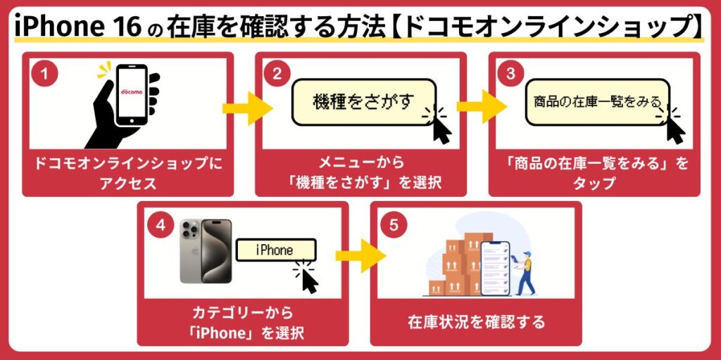 ここではドコモオンラインショップやドコモマイショップでiPhone16の在庫を確認する手順を解説します。