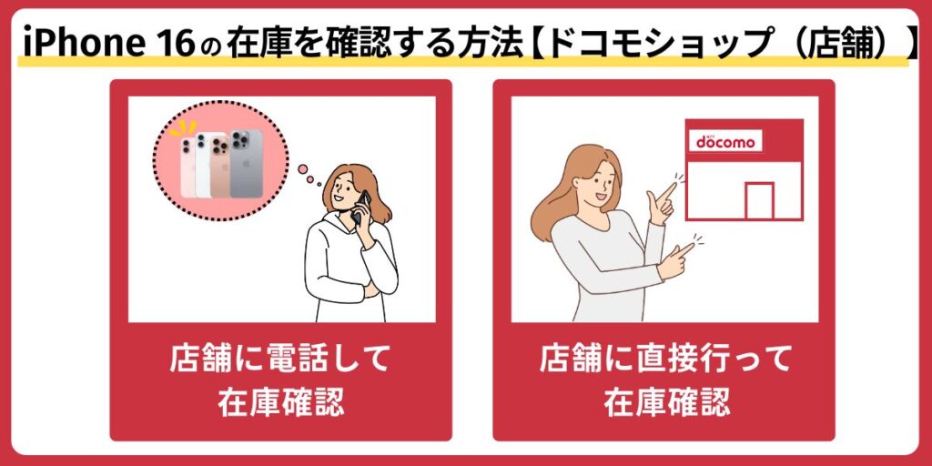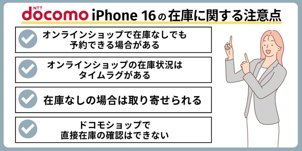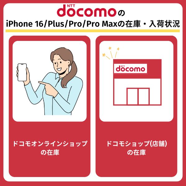 いち早くiPhone16を手に入れたいドコモユーザーは、iPhone16の在庫に関して最新情報だけでなく、予約注文やオンラインショップで入荷スケジュールをチェックをしておきましょう。