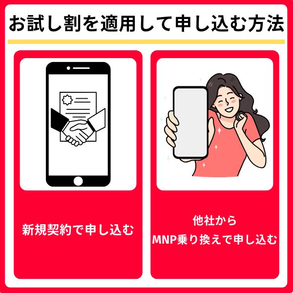 お試し割の申し込み方法は、以下2つの方法に分かれます。