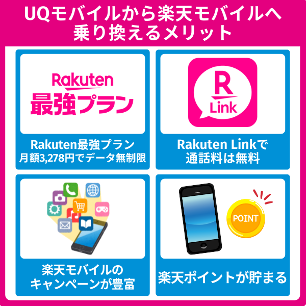 UQモバイルから楽天モバイルに乗り換えるメリット