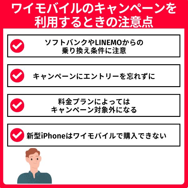 ワイモバイルのキャッシュバックには、申し込み窓口ごとに細かな条件が設定されています。