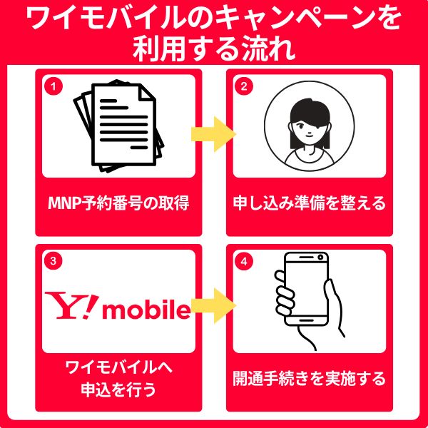 ワイモバイルで30,000円以上のキャッシュバックをもらう4つの方法は、以下のとおりです。