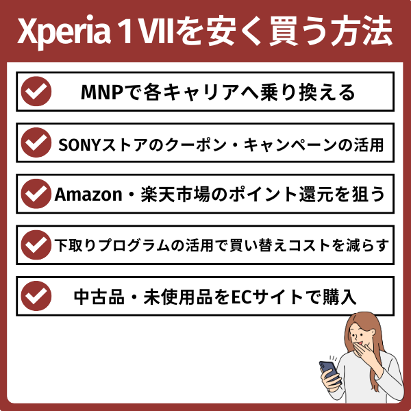 Xperia 1 VIIをできるだけ安く購入する方法は5つです。