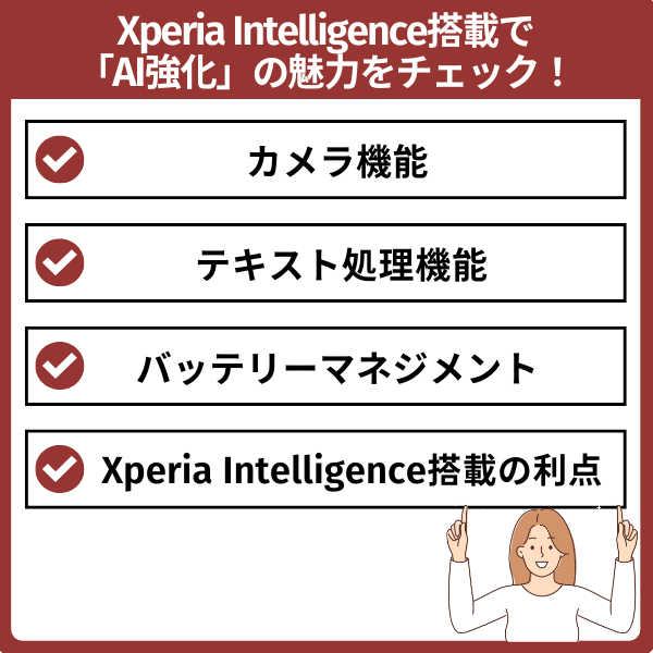 Xperia Intelligence搭載によって、機能が向上する分野やメリットを感じる点が多くあります。