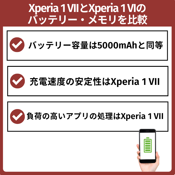 - Xperia 1 VIIとXperia 1 VIのバッテリーやメモリを比較
