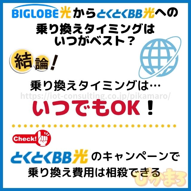 ビッグローブ光からとくとくBB光への乗り換えを成功させるためには、タイミングが非常に重要です。
