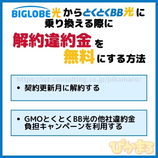 ビッグローブ光からとくとくBB光に乗り換える際に解約違約金を無料にする方法