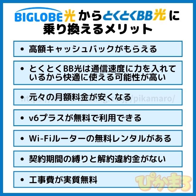 ビッグローブ光からとくとくBB光への乗り換えには、多くのメリットがあります。